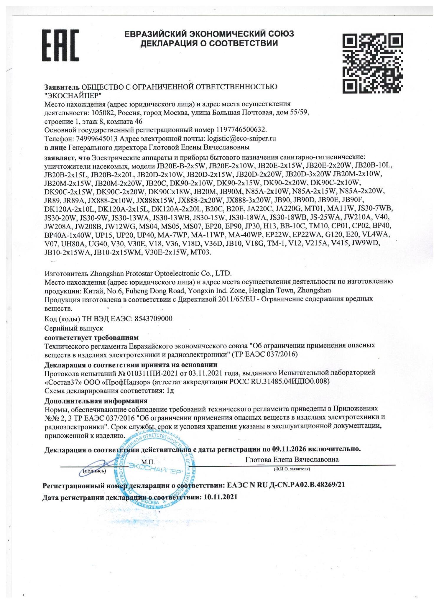 Уничтожитель серии JB20B эффективно и безопасно избавит помещение от комаров, мошек и других летающих насекомых.